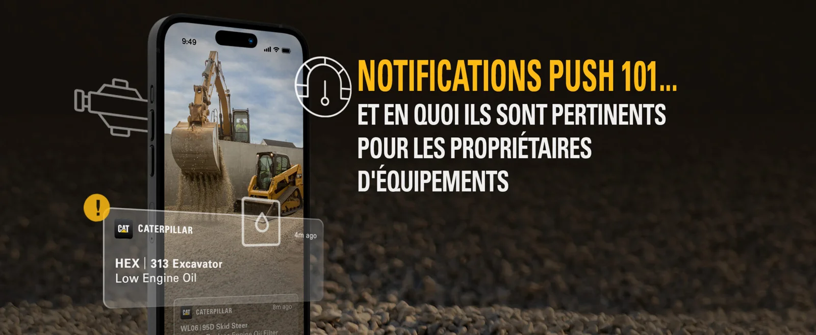 Alors, qu’est-ce que les notifications push ont à voir avec votre équipement Cat ? Vous avez désormais la possibilité d’activer les informations de service dans VisionLink® et l’application parts.cat.com.